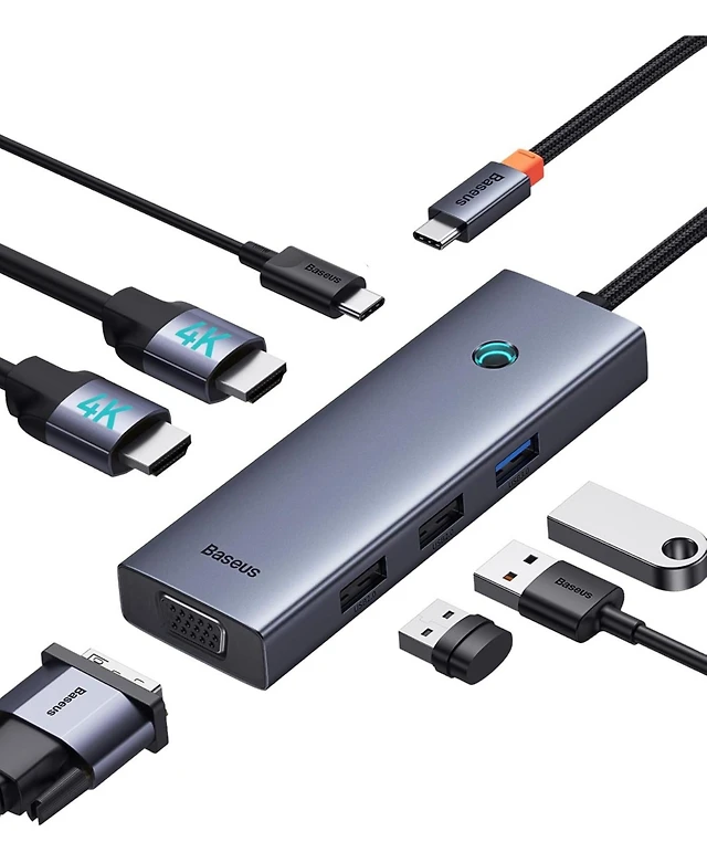 Docking Station Dual Monitor, Baseus 7 in 1 Laptop Docking Station 3 Monitors, Usb C Hub with 4K Hdmi, Vga, 100W Pd, 3 Usb