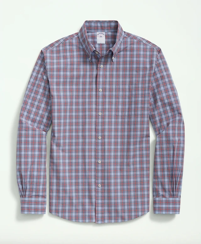 Big & Tall Stretch Cotton Broadcloth Non-Iron Ainsley Collar, Tattersall Dress Shirt