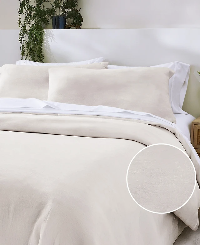 Heavy Slub Natural Beige 3-Piece Duvet Cover Set, Luxury 100% Cotton King Size Comforter Cover with 2 Pillow Shams, Button Closure, Corner Ties by Cal