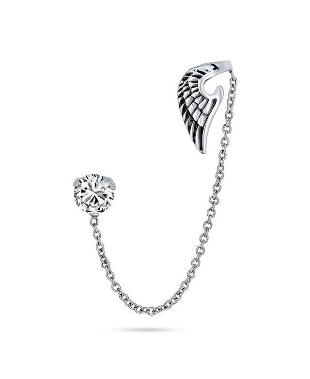 Bling Jewelry Spiritual Guardian Angel Wing Feather Cartilage Ear Lobe Helix Earring Warp Chain Ear Cuff Cz Stud Earring Stainless Steel 1 Piece