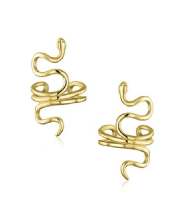 Bling Jewelry Helix Climber Crawler Snake Serpent Clip On Wrap Wire Cartilage Lobe Ear Cuff Earrings Men Non Pierced Ear Gold Plated Sterling Silver Pair