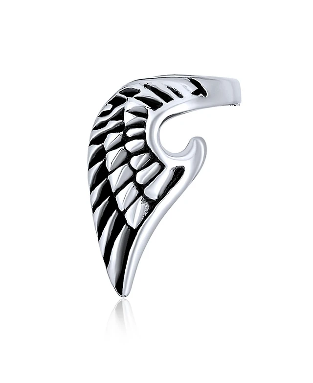 Bling Jewelry Spiritual Guardian Angel Wing Feather Cartilage Ear Lobe Helix Earring Wrap Ear Cuff Clip Black Oxidized Stainless Steel 1 Piece