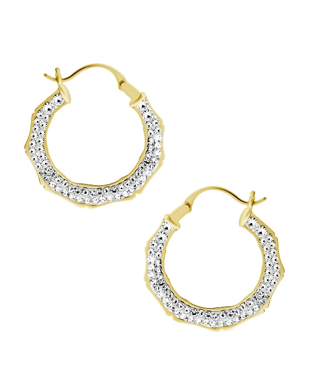 Pavé Bamboo Medium Hoop Earrings 18K Gold Plated