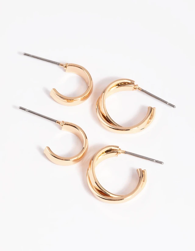 Gold Plated Sterling Silver Mix Thick Hoop Earring Pack