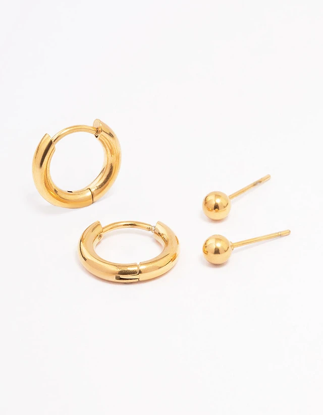 Gold Plated Surgical Steel Plain Stud & Huggie Earring Pack