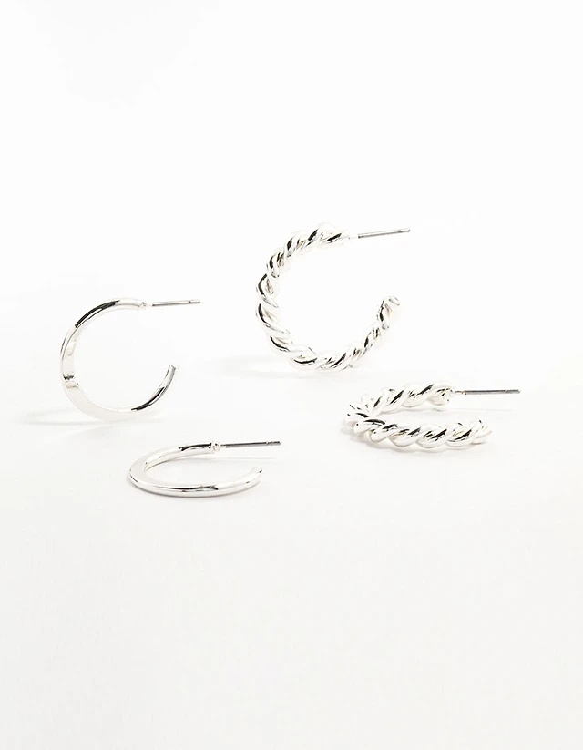 Silver Clean & Twisted Hoop Earrings 2-Pack