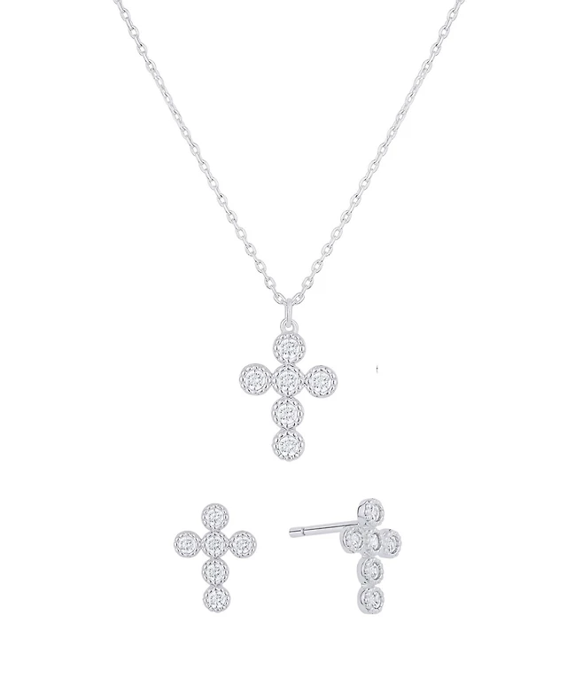 Giani Bernini Cubic Zirconia Cross Pendant Necklace & Stud Earrings Set in Sterling Silver, Exclusively at Macy's