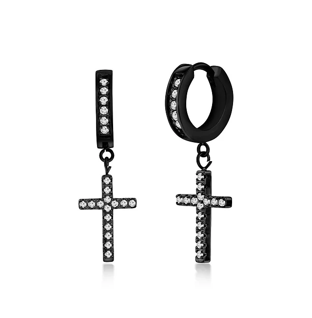 Stainless Steel Cross Cz Charm Huggie Hoop Earrings