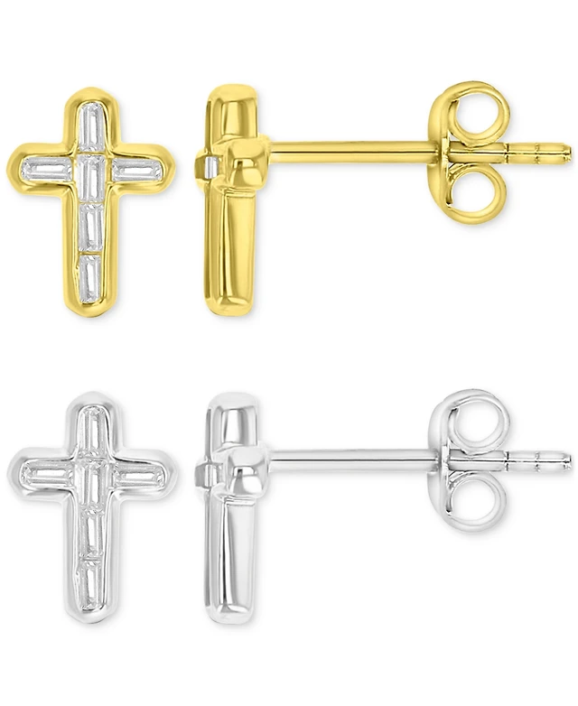Giani Bernini 2-Pc. Set Cubic Zirconia Cross Pendant Necklace & Baguette Stud Earrings in Sterling Silver, Created for Macy's