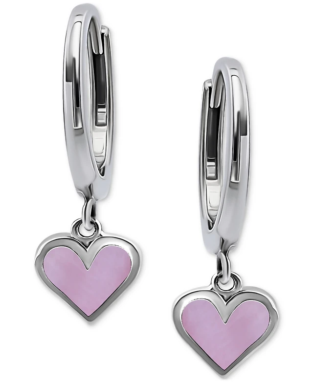 Bling Jewelry Delicate Sterling Silver Dangle Puff Heart Shaped Charm Huggie Hoop Earrings For