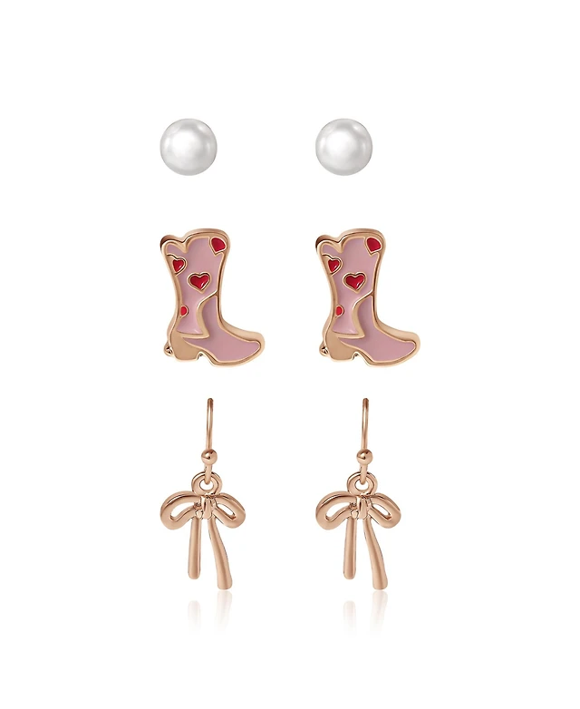 Jessica Simpson Imitation Gold Plated 3-Pack Stud Earrings Set