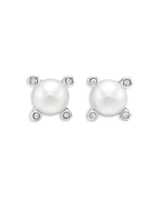 Sterling Silver Cubic Zirconia and Pearl Bulb Earrings