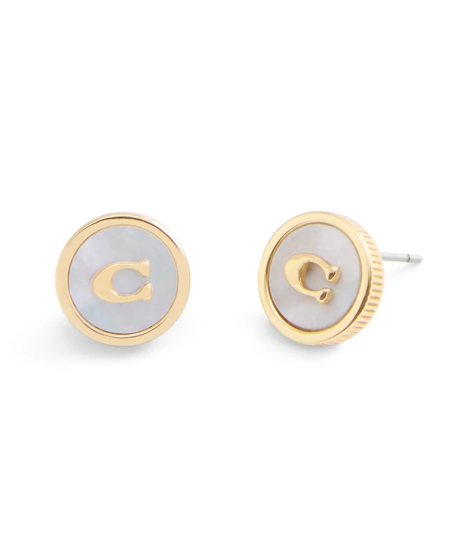 GiGiGirl 14K Gold Plated with Mother Of Pearl Stud Earrings For Kids