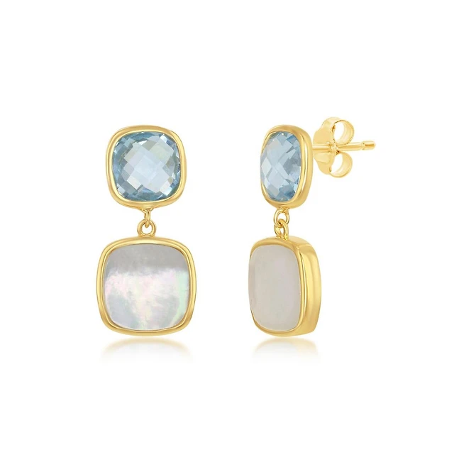 14K Gold Plated with Clear Cubic Zirconia & Mother of Pearl Drop Earrings
