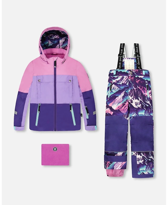 Deux par Big Girls Two-Piece Teknik Snowsuit Purple Mountain Print - Toddler|Child