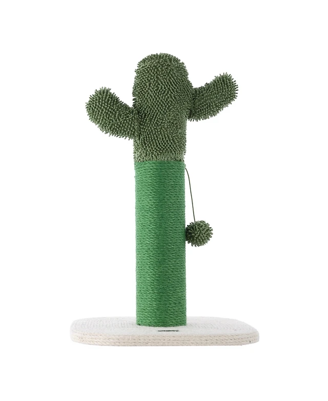 Pecos 21" Modern Jute Cactus Cat Scratching Post with Fuzzy Toy, Green/White