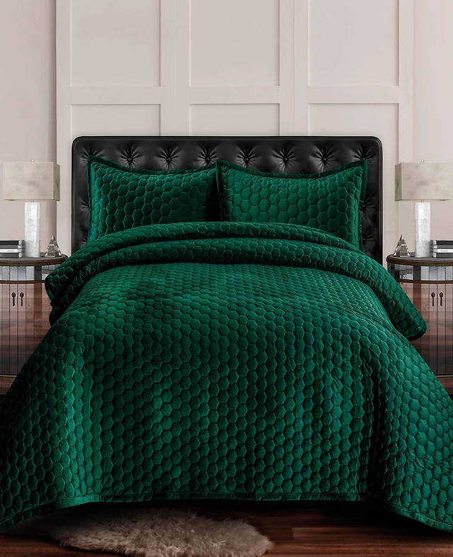 Tribeca Living Lugano Honeycomb Velvet Oversized Solid piece Quilt Set