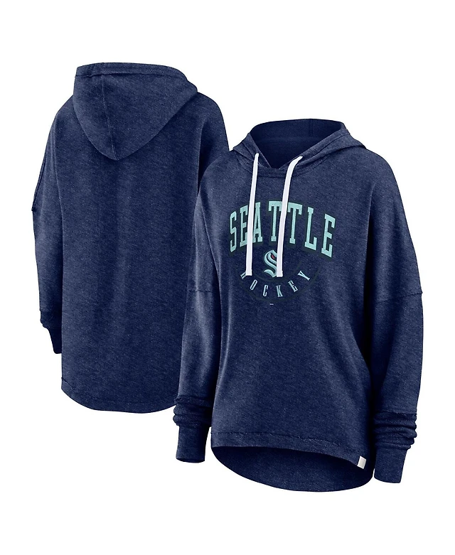 Women's Fanatics Heather Deep Sea Blue Distressed Seattle Kraken Lux Lounge Helmet Arch Pullover Hoodie