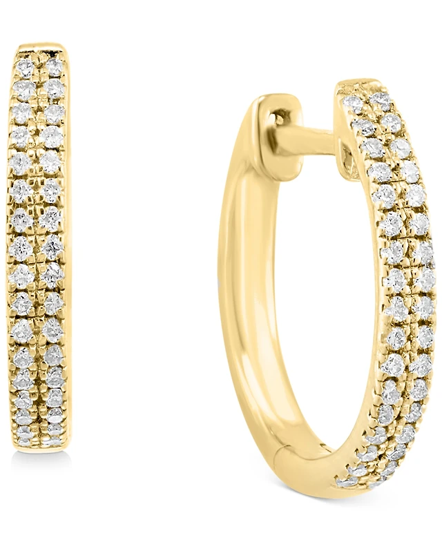Effy Diamond Baguette & Round Small Huggie Hoop Earrings (1-1/5 ct. t.w.) in 14k Gold, 0.55"