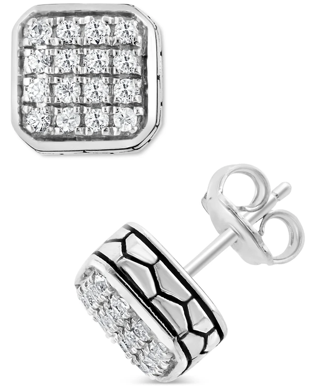 Effy Certified Diamond Baguette & Round Halo Emerald Shaped Cluster Stud Earrings (3/8 ct. t.w.) in 14k White Gold