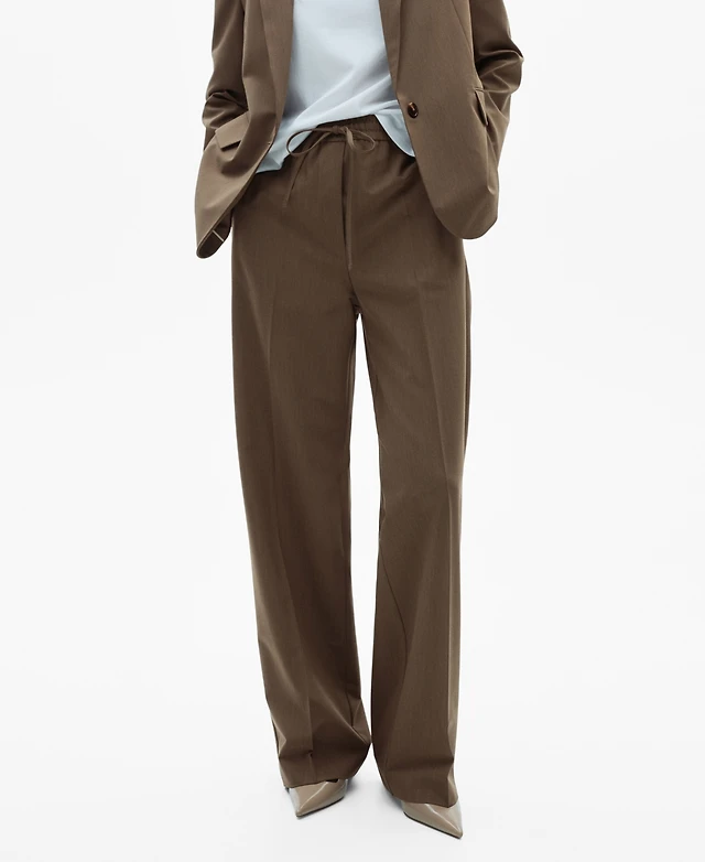 Mango Women's Elastic Waist Flowy Trouser Pants