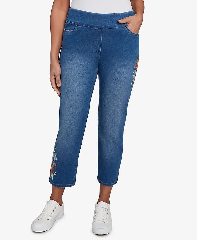 Alfred Dunner Petite El Paso Floral Vine Embroidered Denim Ankle Pants