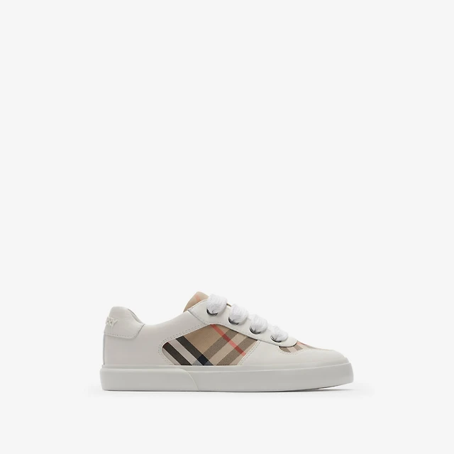 Check Cotton and Leather Sneakers in Sand - Children | Burberry® Official