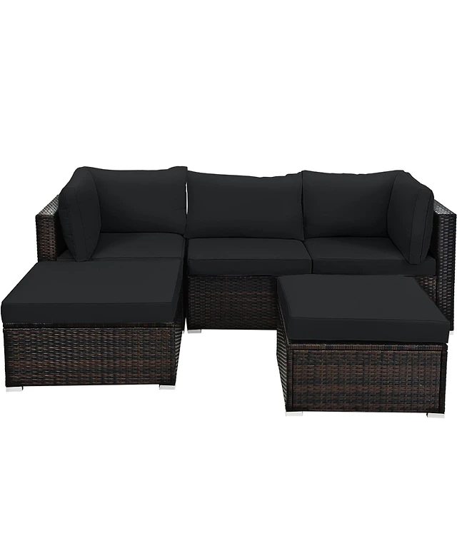 Gymax 5 Piece Patio Rattan Conversation Set Outdoor Wicker Sofa Set with 2 Ottomans