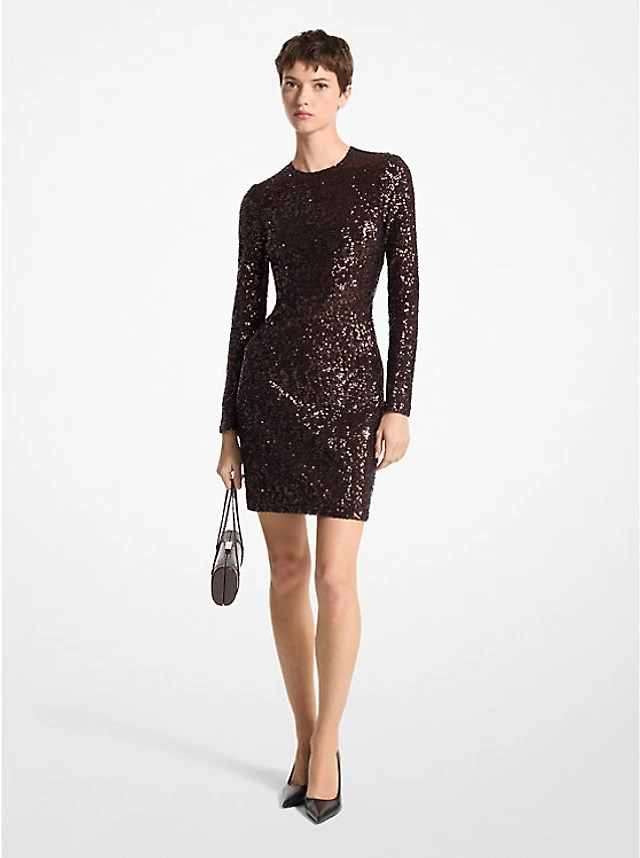 Sequined Stretch Matte Jersey Turtleneck Dress