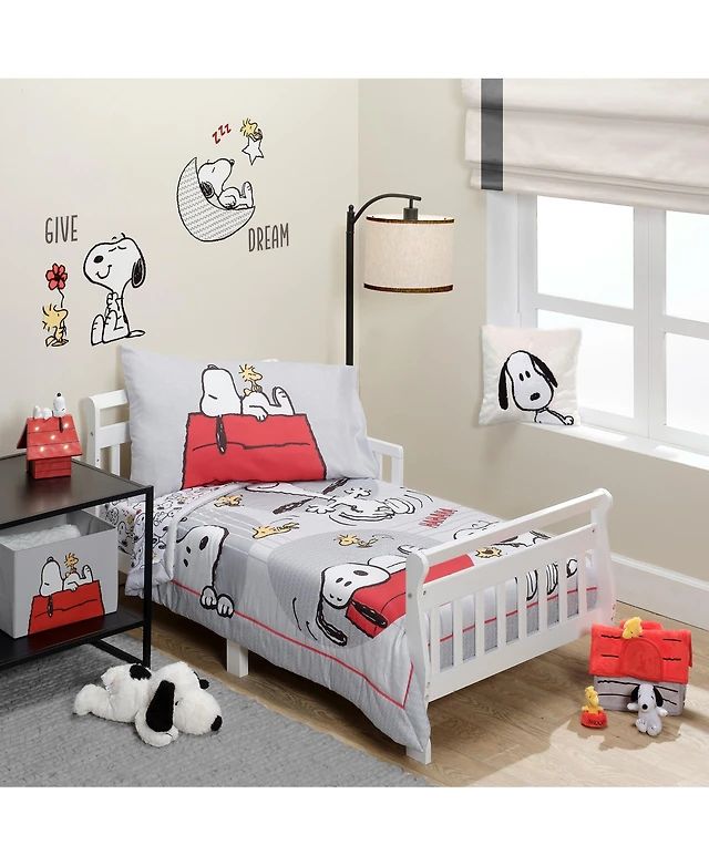 Bedtime Originals Toddler Snoopy Love 4-Piece Bedding Set - Gray/Red/White