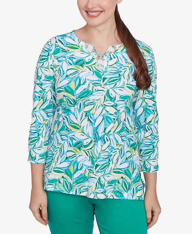 Ruby Rd. Plus Size Tossed Leaves Embellished Knit Top