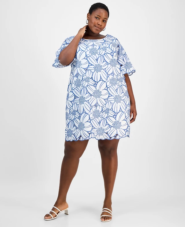 Women's Plus Wildflower Embroidered Floral Mesh Cocktail Dress