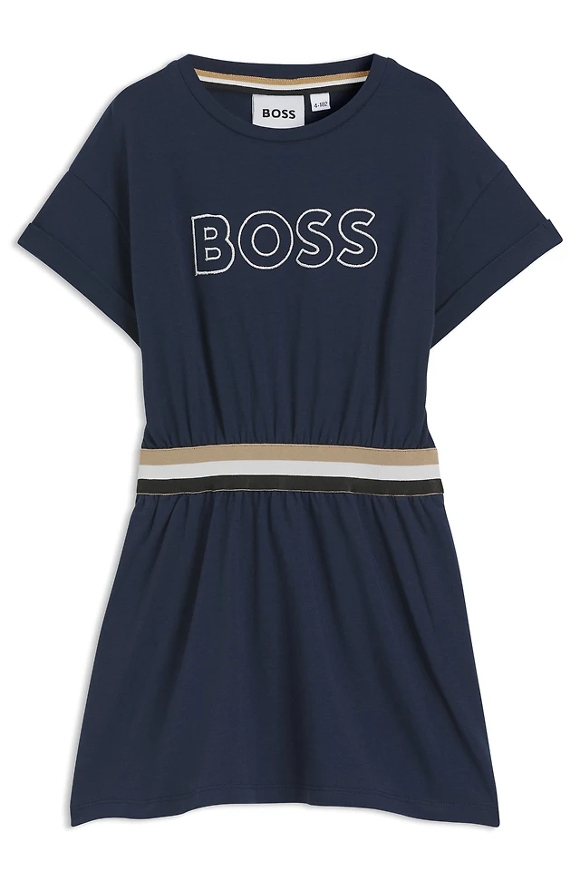 Kids' stretch-cotton dress with embroidered logo