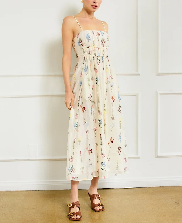 Modenaire Women's Floral-Embroidered Smocked Tiered Maxi Dress