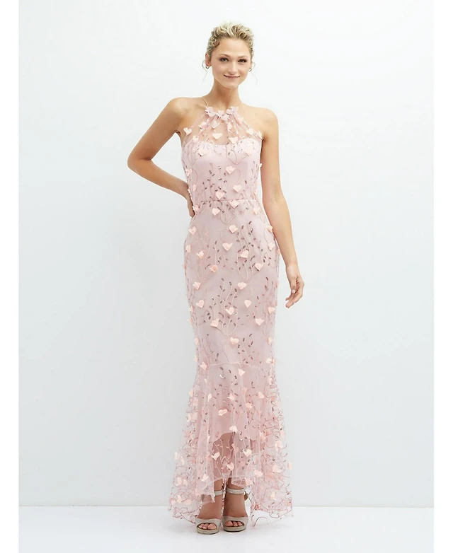 Dessy Collection Women's 3D Floral Embroidered Little White Midi Dress with Nude Corset Underlay