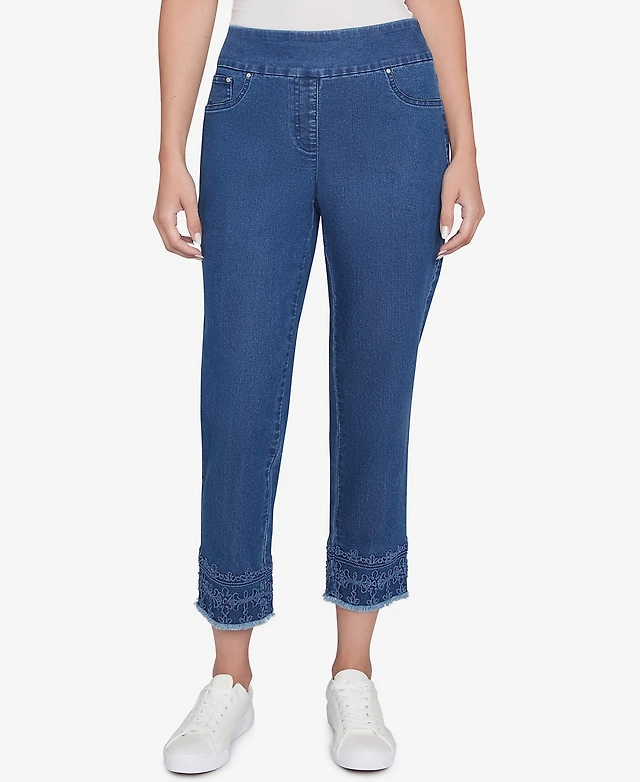 Ruby Rd. Petite Embroidered Hem Soft Stretch Denim Capri Jeans