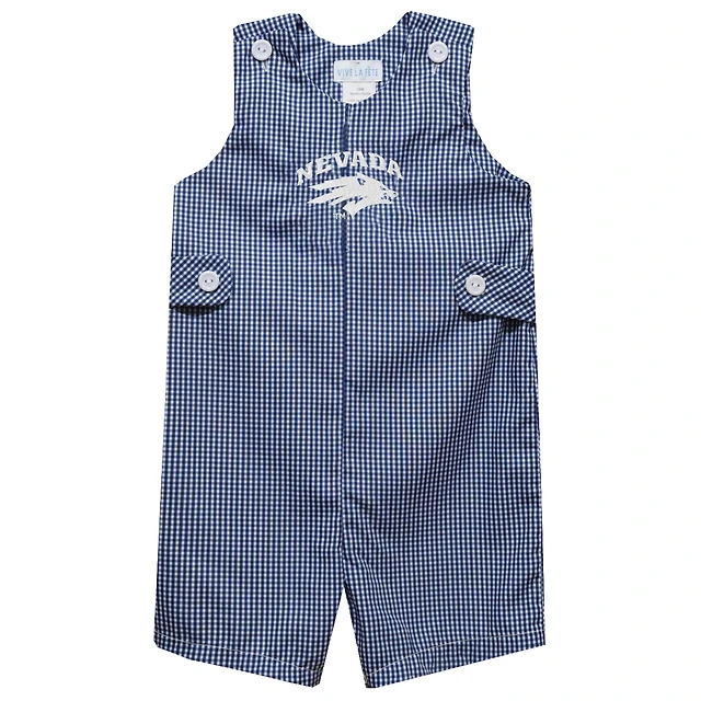 Infant Vive La Fete Navy Nevada Wolf Pack Gingham Jon Jon Romper