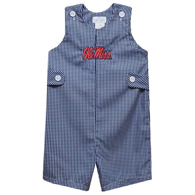 Infant Vive La Fete Navy Ole Miss Rebels Gingham Jon Jon Romper