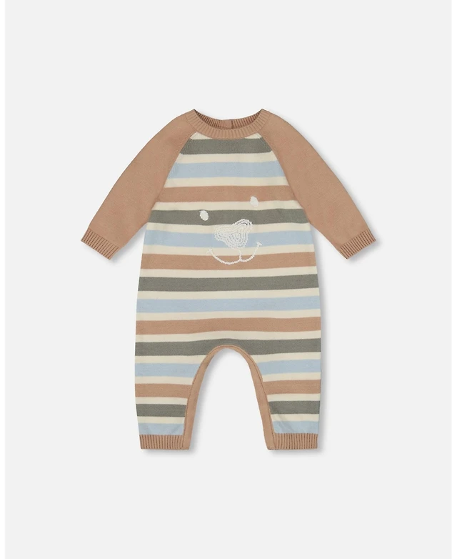 Deux par Baby Boy Knitted Romper Blue and Green Stripes