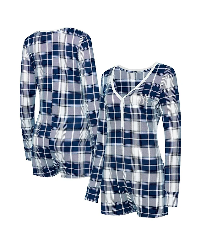 Concepts Sport Women's Navy New York Yankees Ashford Plaid V-Neck Knit Romper