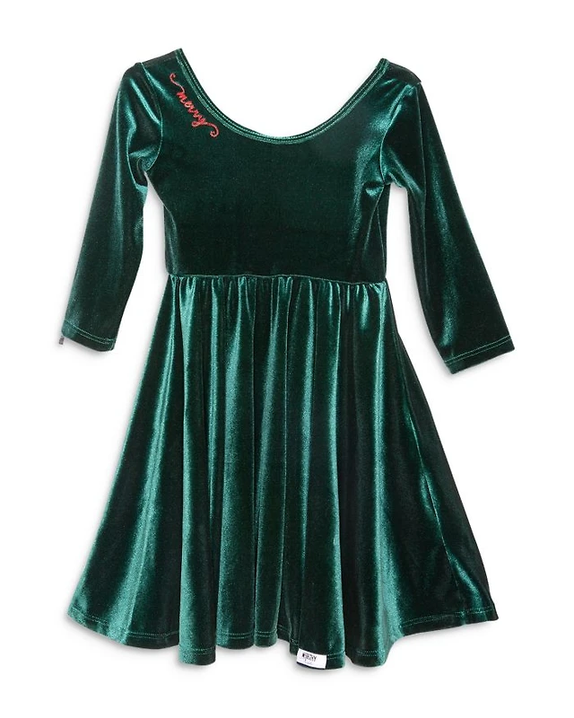 Girls' Holiday Twirly Dress Emerald Stretch Velvet - Little Kid, Big Kid