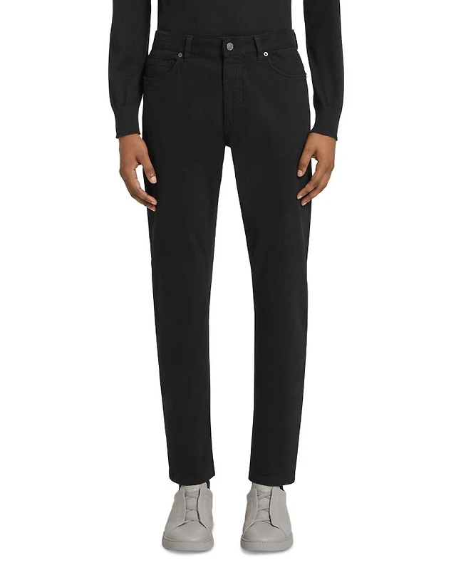 Garment Dyed Stretch Gabardine City Slim Fit Jeans Black