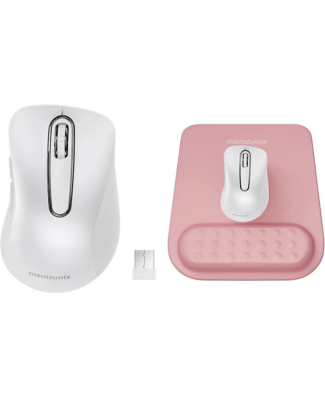 memzuoix 2.4G Wireless Mouse,Ergonomic Mouse Pad with Wrist Support for Laptop, Pc, Desktop, MacBook(White Mouse + Pad)