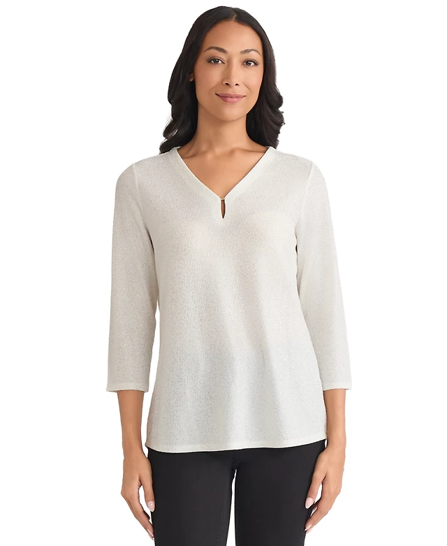 Jones New York Women's Leopard Dew Drop V-Neck Top