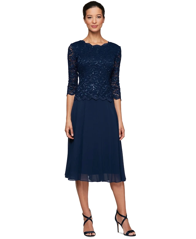 Alex Evenings Plus Sequined Lace A-Line Dress