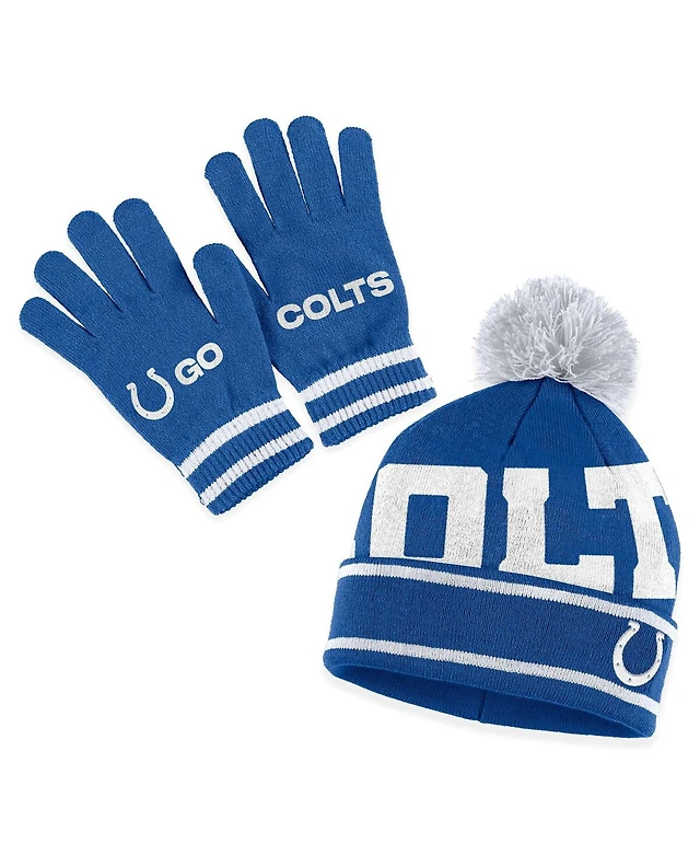 Women's Wear by Erin Andrews Royal Indianapolis Colts Double Jacquard Cuffed Knit Hat with Pom and Gloves Set
