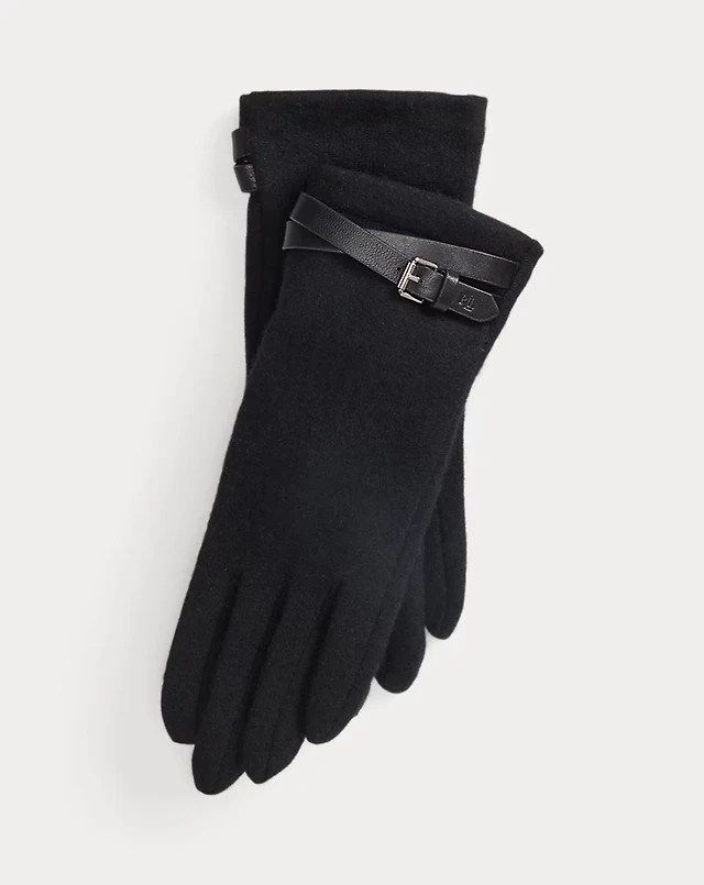 Sheepskin-Trim Wool-Blend Tech Gloves