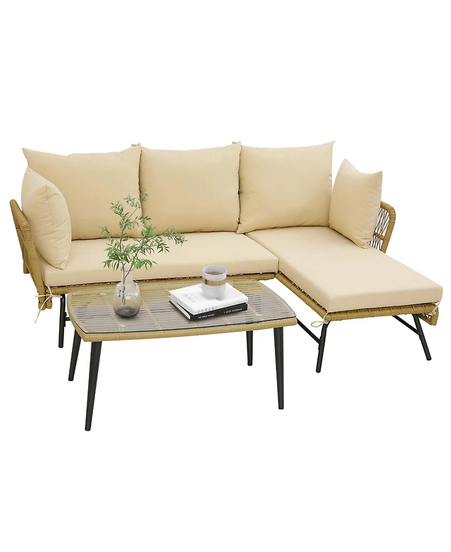 Sugift 8 Piece Wicker Sofa Rattan Dinning Set Patio Furniture with Storage Table