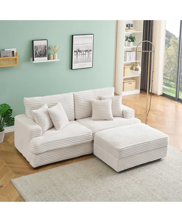 Streamdale 82 inches black corduroy sofa, storage feet +4 throw pillows, create a living room, office fashion new darling!