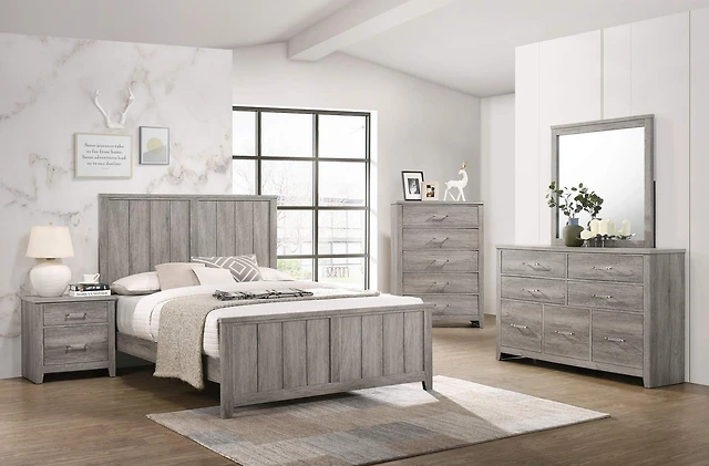 Kings Brand Furniture Oceana Gray Wood 7-Drawer Dresser with Mirror
